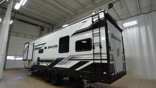 Inside, the Momentum G-Class 29GS is equipped to handle all your culinary needs with its three-burner cooktop and mid-size refrigerator that operates on both electric and propane. The theater seating invites you to unwind and enjoy your favorite shows, while the convertible bed adds flexibility for accommodating guests. The 18-foot powered retractable awning creates a perfect outdoor living space, ideal for enjoying the fresh air and scenic views. With a substantial fresh water capacity of 90 gallons and generous gray and black water tanks, this RV is ready for extended adventures. Visit your nearest General RV dealership to discover more about this remarkable model and start your journey today!
