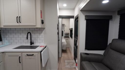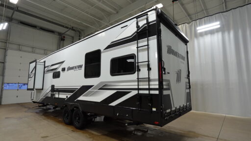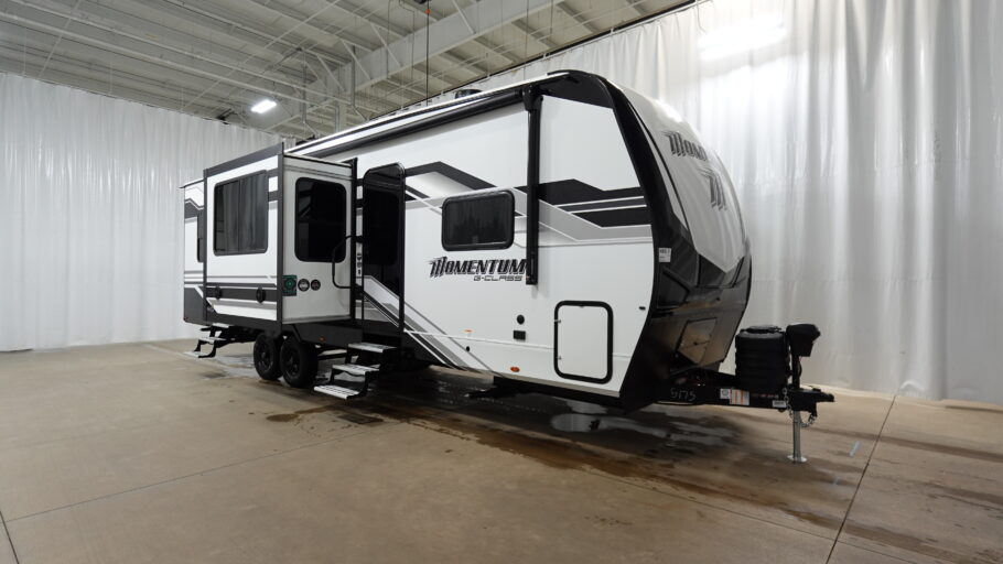 Inside, the Momentum G-Class 29GS is equipped to handle all your culinary needs with its three-burner cooktop and mid-size refrigerator that operates on both electric and propane. The theater seating invites you to unwind and enjoy your favorite shows, while the convertible bed adds flexibility for accommodating guests. The 18-foot powered retractable awning creates a perfect outdoor living space, ideal for enjoying the fresh air and scenic views. With a substantial fresh water capacity of 90 gallons and generous gray and black water tanks, this RV is ready for extended adventures. Visit your nearest General RV dealership to discover more about this remarkable model and start your journey today!
