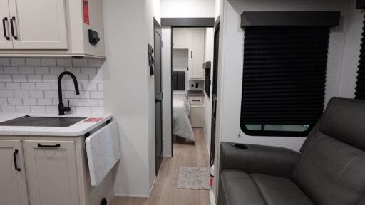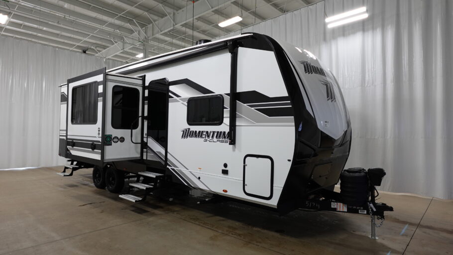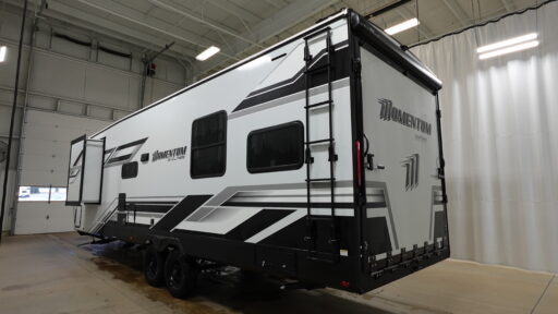 Inside, the Momentum G-Class 29GS is equipped to handle all your culinary needs with its three-burner cooktop and mid-size refrigerator that operates on both electric and propane. The theater seating invites you to unwind and enjoy your favorite shows, while the convertible bed adds flexibility for accommodating guests. The 18-foot powered retractable awning creates a perfect outdoor living space, ideal for enjoying the fresh air and scenic views. With a substantial fresh water capacity of 90 gallons and generous gray and black water tanks, this RV is ready for extended adventures. Visit your nearest General RV dealership to discover more about this remarkable model and start your journey today!