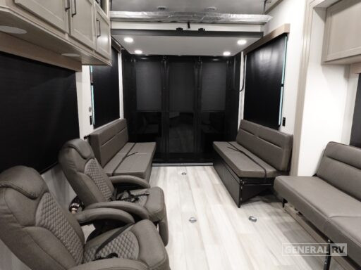 The thoughtful layout showcases a 15-foot garage, ideal for storing your outdoor gear, while the dual powered awnings create a perfect outdoor space for relaxation. The automatic heater and 75-amp electrical service ensure you stay comfortable no matter the weather. With a fresh water capacity of 160 gallons, and ample gray and black water storage, your off-grid adventures can last longer. The Momentum G-Class 325G is more than just an RV; it's a mobile sanctuary designed to enhance every journey. For more details, visit your nearest General RV dealership and start your adventure today!