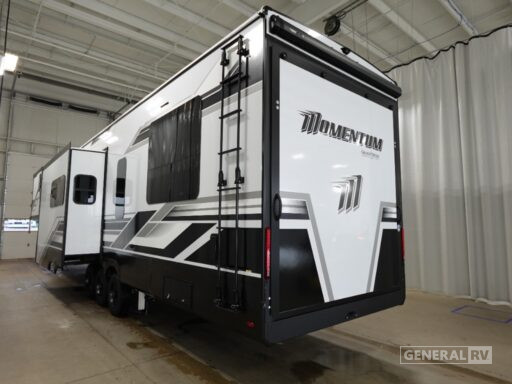 With any Momentum M-Class toy hauler by Grand Design, you will enjoy luxury at every turn! They have been constructed to a superior standard with a thermal roof design, triple insulated main floor and garage floor, and a Rail-Tite underbelly seal that will allow you to camp in all elements. Each model also features an 8' 5" wide body chassis with a wide rail design, no wheel wheels, and a dovetail entry for easier loading. The Stealth A/C system provides maximum cooling power, and the CRE3000 suspension system means you can enjoy a smooth tow each time. You will love the luxurious interior with a professional grade stainless steel cooktop, interior color changing LED accent lighting, a fiberglass shower with a glass door, and solid surface countertops.