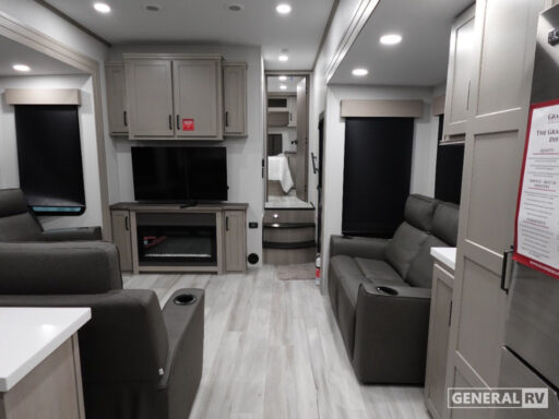 Discover the 2026 Grand Design Momentum G-Class 415G, a luxurious haven on wheels designed for those who crave adventure without sacrificing comfort. This RV is a masterpiece of thoughtful design and engineering, boasting a spacious layout that comfortably sleeps six. With a king-size bed in the master suite, a cozy queen bed, and a convertible option, everyone will find their perfect spot to unwind after a day of exploration. The heart of this RV is its center kitchen, equipped with a full-size electric refrigerator and a three-burner cooktop, making meal preparation a breeze.