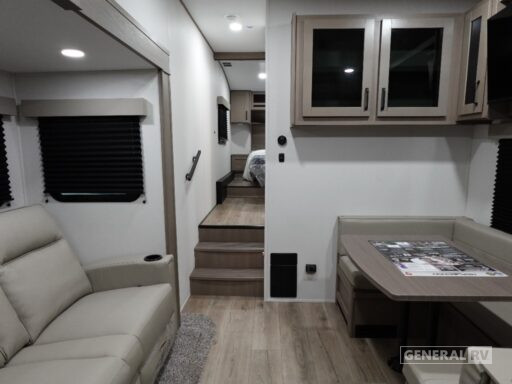The Reflection 22RK is thoughtfully designed to maximize every inch of space. The front bedroom boasts a plush queen bed, ensuring a restful night's sleep, while the convertible seating options accommodate up to six guests comfortably. Enjoy the great outdoors under the expansive 18-foot powered awning, perfect for al fresco dining or simply relaxing with a good book. With ample storage, including unobstructed pass-thru compartments and an all-in-one docking station, you'll have everything you need at your fingertips. Ready to explore more? Visit your nearest General RV dealership to discover the Reflection 100 Series today!