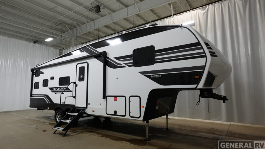 Each Reflection 100 Series fifth wheel by Grand Design is affordable and packed with luxury for unforgettable camping memories! The MorRyde CRE3000 suspension system and Goodyear Endurance tires will provide smooth towing from home to campground. And the solar package with a 180W solar panel, 60 Amp charge controller and 12V refrigerator will allow you to camp for longer periods of time and in more locations! A heated and enclosed underbelly with circulating heat is included in the Arctic 4-Seasons Protection Package, along with a double insulated roof and front cap, and thermofoil insulation under the holding tanks so you can camp all year long if you choose. You will appreciate having an on-demand water heater for hot showers after exploring, and the universal all-in-one docking station will let you monitor your RVs tanks levels and functions with ease. These models also include many luxurious interior features, such as premium Congoleum flooring, pleated shades, residential cabinetry, and matte black fixtures and hardware. Don't let the Reflection 100 Series fifth wheels pass you by!
