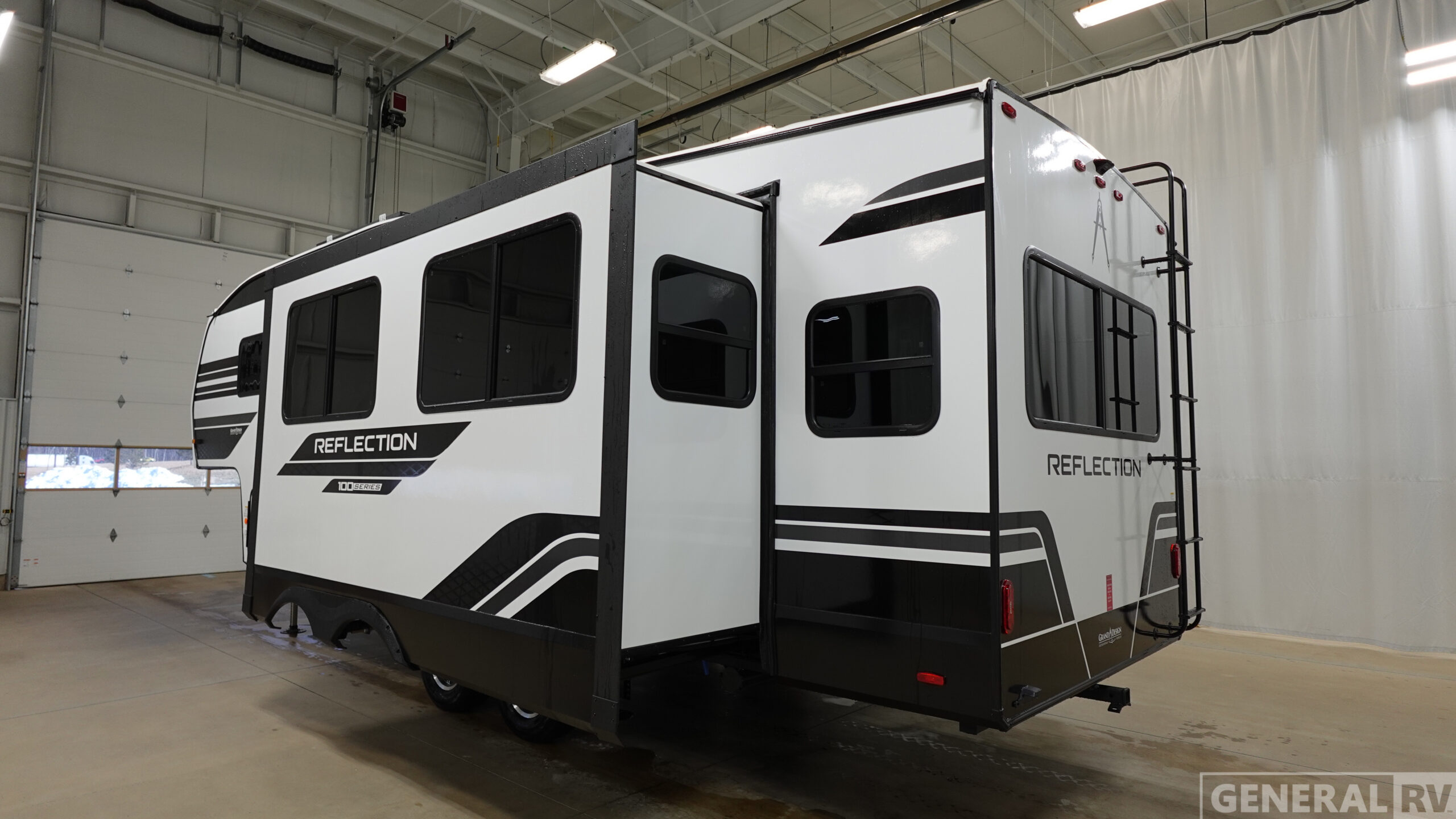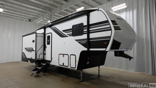 Each Reflection 100 Series fifth wheel by Grand Design is affordable and packed with luxury for unforgettable camping memories! The MorRyde CRE3000 suspension system and Goodyear Endurance tires will provide smooth towing from home to campground. And the solar package with a 180W solar panel, 60 Amp charge controller and 12V refrigerator will allow you to camp for longer periods of time and in more locations! A heated and enclosed underbelly with circulating heat is included in the Arctic 4-Seasons Protection Package, along with a double insulated roof and front cap, and thermofoil insulation under the holding tanks so you can camp all year long if you choose. You will appreciate having an on-demand water heater for hot showers after exploring, and the universal all-in-one docking station will let you monitor your RVs tanks levels and functions with ease. These models also include many luxurious interior features, such as premium Congoleum flooring, pleated shades, residential cabinetry, and matte black fixtures and hardware. Don't let the Reflection 100 Series fifth wheels pass you by!