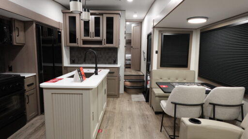Discover the 2026 Grand Design Reflection 303RLS, where luxury meets practicality in a beautifully designed space. This fifth wheel is your perfect getaway companion, offering the comforts of home wherever you roam. With a spacious rear living area featuring theater seating and a tri-fold sofa, you can relax in style while watching your favorite shows on the entertainment center. The center kitchen is a culinary dream, equipped with a full-size refrigerator, three-burner cooktop, and a generous pantry, making meal prep a breeze.