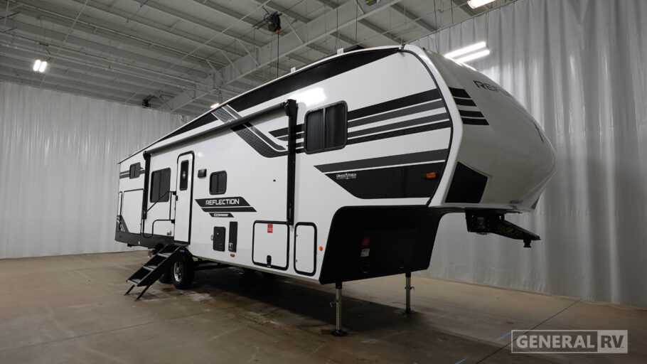 Each Reflection 100 Series fifth wheel by Grand Design is affordable and packed with luxury for unforgettable camping memories! The MorRyde CRE3000 suspension system and Goodyear Endurance tires will provide smooth towing from home to campground. And the solar package with a 180W solar panel, 60 Amp charge controller and 12V refrigerator will allow you to camp for longer periods of time and in more locations! A heated and enclosed underbelly with circulating heat is included in the Arctic 4-Seasons Protection Package, along with a double insulated roof and front cap, and thermofoil insulation under the holding tanks so you can camp all year long if you choose. You will appreciate having an on-demand water heater for hot showers after exploring, and the universal all-in-one docking station will let you monitor your RVs tanks levels and functions with ease. These models also include many luxurious interior features, such as premium Congoleum flooring, pleated shades, residential cabinetry, and matte black fixtures and hardware. Don't let the Reflection 100 Series fifth wheels pass you by!