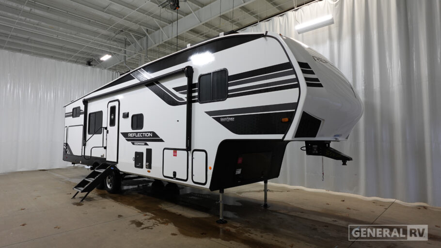 Each Reflection 100 Series fifth wheel by Grand Design is affordable and packed with luxury for unforgettable camping memories! The MorRyde CRE3000 suspension system and Goodyear Endurance tires will provide smooth towing from home to campground. And the solar package with a 180W solar panel, 60 Amp charge controller and 12V refrigerator will allow you to camp for longer periods of time and in more locations! A heated and enclosed underbelly with circulating heat is included in the Arctic 4-Seasons Protection Package, along with a double insulated roof and front cap, and thermofoil insulation under the holding tanks so you can camp all year long if you choose. You will appreciate having an on-demand water heater for hot showers after exploring, and the universal all-in-one docking station will let you monitor your RVs tanks levels and functions with ease. These models also include many luxurious interior features, such as premium Congoleum flooring, pleated shades, residential cabinetry, and matte black fixtures and hardware. Don't let the Reflection 100 Series fifth wheels pass you by!