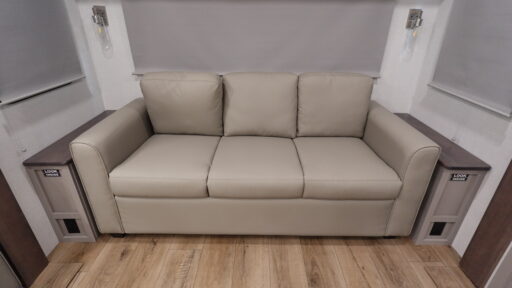 Experience the ultimate in comfort and style with the 2026 Grand Design Reflection 337RLS. This luxurious fifth wheel is designed for those who crave the perfect blend of elegance and functionality. As you enter, you'll be greeted by a spacious rear living area featuring plush theater seating and a sofa, perfect for relaxing after a day of adventure. The entertainment center, complete with a 40" TV, ensures that movie nights are nothing short of spectacular. The center kitchen boasts a full-size refrigerator and a three-burner cooktop, making meal preparation a breeze, whether you're serving a quick snack or a gourmet dinner.