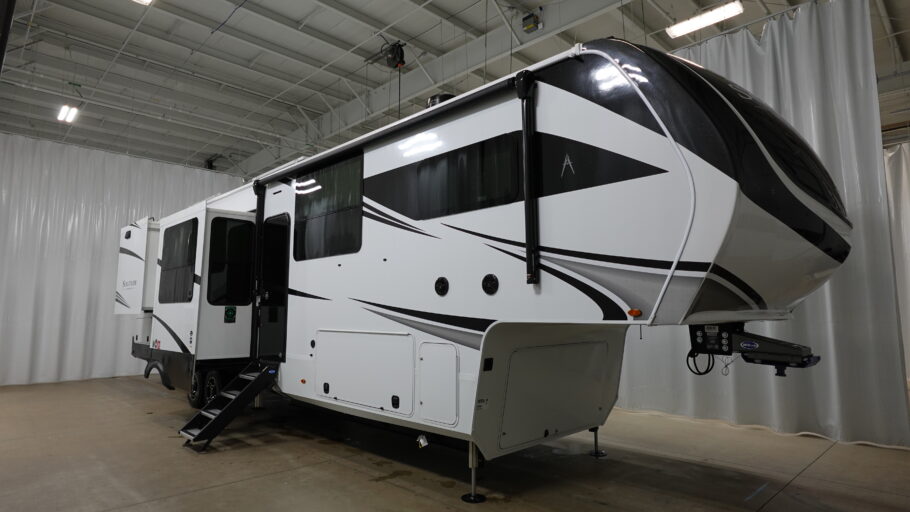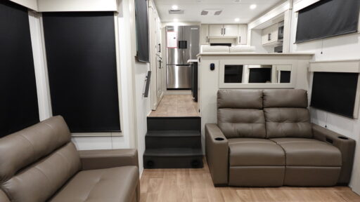With any Solitude fifth wheel by Grand Design, you will get maximum insulation from the thermal roof design, the exclusive fully laminated walls, the triple insulated main floor, the Rail-Tite underbelly seal, the insulated gooseneck and the insulated baggage doors. The MORryde rubber pin box system utilizes a unique rubber shear spring to positively deal with rough towing and road shock, the Tire Linc TPMS system monitors pressure and temperature, and the 6-point hydraulic system allows you to setup easily. And the upgraded shower system, the hardwood window valances, the oversized kitchen pantry, the window above the master bed headboard, and the Rockford Fosgate stereo entertainment system with HDMI and App controls are a few more reasons you will love these extended-stay fifth wheels!