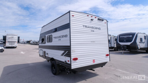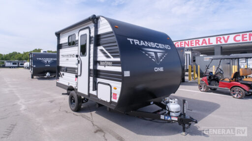 With any Transcend One travel trailer by Grand Design, you will enjoy lightweight towing thanks to their single-axle. There are many interior comforts to make camping easier than ever, such as recessed lighting, residential countertops, and a 6' 6" interior height. Each model is constructed with a heated and enclosed underbelly with suspended tanks, a moisture barrier floor enclosure, and Thermofoil over the roof and front cap for added protection. And a JBL sound system will let you listen to tunes as you visit under the power awning with a Fusion light!
