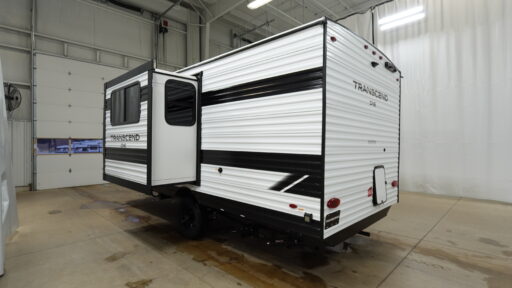 The Transcend One 161BH is equipped with thoughtful amenities to enhance your camping experience. Enjoy the convenience of a 10 cu ft glass front refrigerator and a functional kitchen with a two-burner cooktop. The 16-foot power awning with Fusion Light creates an inviting outdoor space, perfect for relaxing after a day of exploration. With a 37-gallon fresh water capacity and efficient gas/electric water heater, this RV ensures you have all the essentials for extended adventures. Plus, the unobstructed pass-thru storage offers ample room for all your gear.