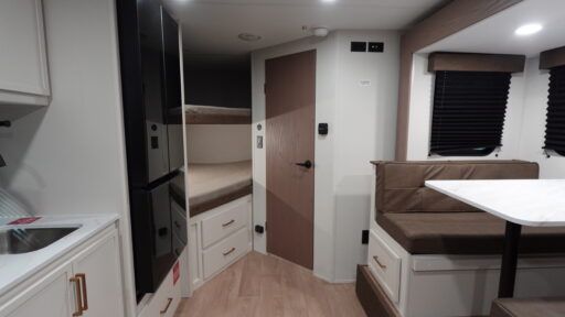 Experience the perfect blend of comfort and adventure with the 2026 Grand Design Transcend One 161BH. This compact yet spacious travel trailer is designed for families who crave both convenience and style on the road. With a length of 23 feet, it offers a cozy haven featuring a versatile Murphy bed, allowing you to maximize living space without sacrificing comfort. The bunk beds are perfect for the kids, and the booth dinette provides a great spot for family meals or game nights.