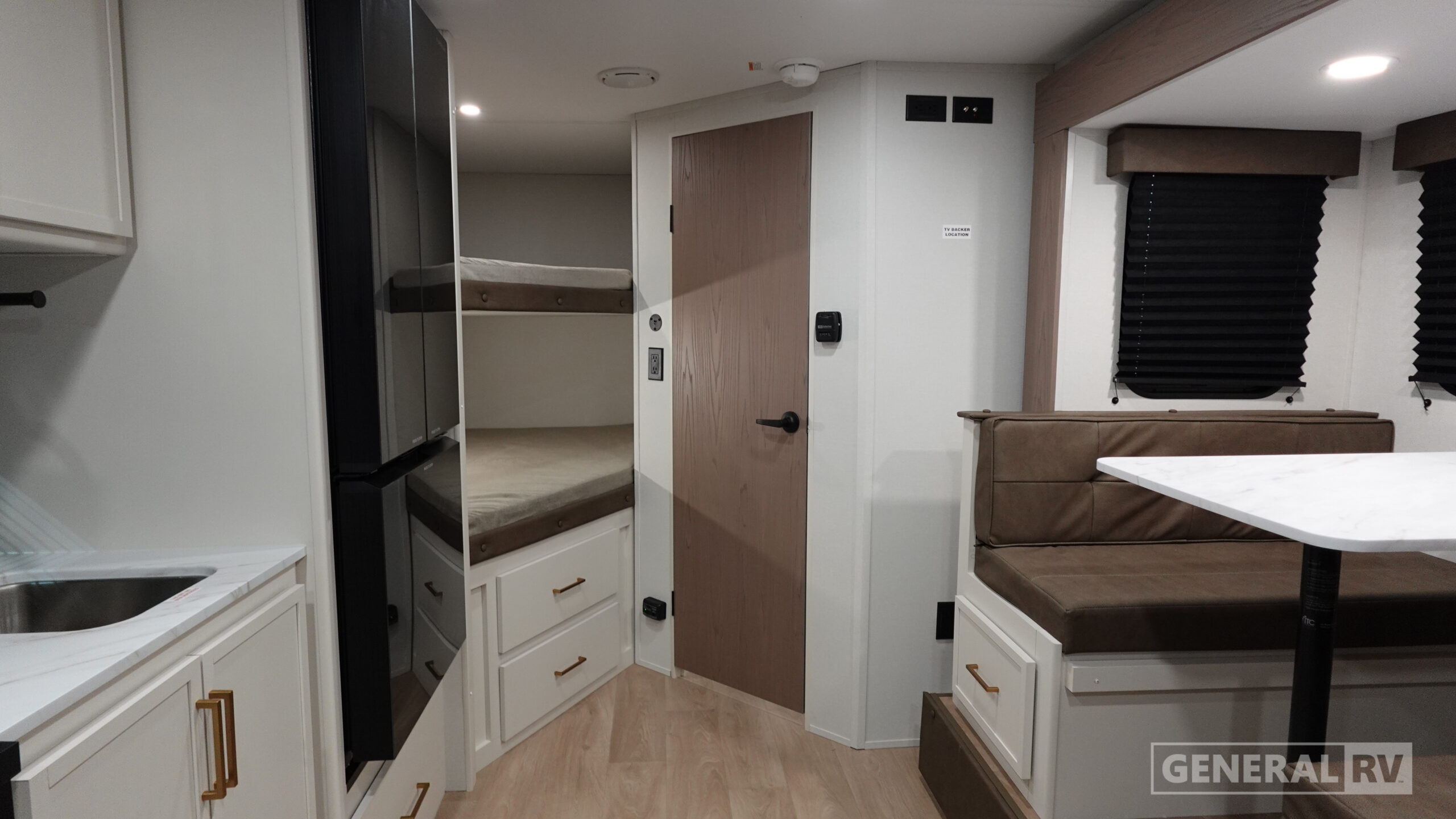 This travel trailer is not only about comfort but also about efficient design. The single slide-out expands your living area, while the universal docking station and solar prep options make it easy to stay connected wherever you roam. Whether you're setting up camp in the mountains or by the beach, the Grand Design Transcend One 161BH is your ticket to unforgettable family memories. For more information or to see this model in person, visit your nearest General RV dealership.