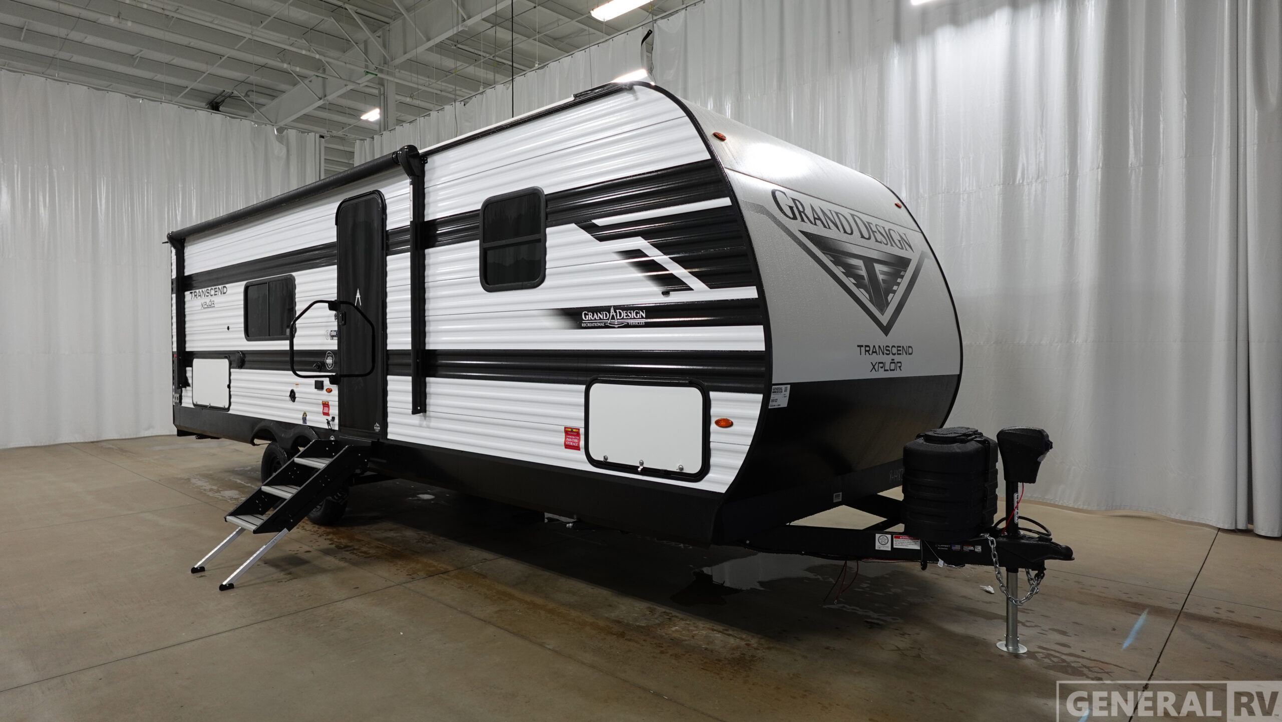 The customer-focused, quality-built Transcend Xplor travel trailers by Grand Design are your ticket to fun and adventure. You will appreciate the power tongue jack when it comes time to set up, as well as the all-in-one utility center and the detachable power cord with an LED light. These models include many outlets throughout, USB ports to charge your gadgets, and a JBL exterior speaker to listen to your favorite tunes. The interior of the Transcend Xplor will have you feeling right at home with upgraded residential furniture, residential countertops, residential cabinet doors, and the list goes on!