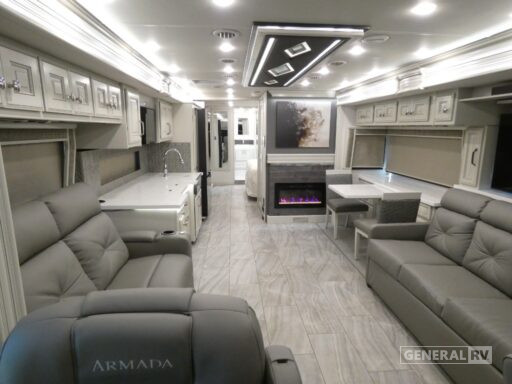 Enhance your travel experience with the Holiday Rambler Armada 44LE's thoughtful design and luxurious features. For more information or to see it in person, visit your nearest General RV dealership.