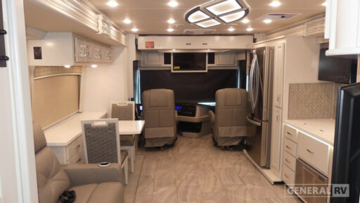 Experience refined comfort and dependable performance in this luxury Class A diesel motorhome, built on a durable Titan Bridge® foundation and a Freightliner Custom Chassis XCM for a smooth, confident ride. Powered by a Cummins® 6.7L 360HP engine, this coach is designed for both strength and stability with V-Ride™ technology and an advanced suspension system. Inside, you’ll find upscale residential features like a refrigerator, induction cooktop, convection microwave, and beautifully polished porcelain tile flooring with heat in the living area. Modern conveniences such as dual cockpit monitors, Firefly multiplex wiring with touchscreen controls, and a WiFi extender with LTE and solar support keep you connected on the road, while the Aqua-Hot 400D system delivers continuous hot water and cozy interior heat. With generous storage throughout and stylish furnishings, this motorhome is ready to elevate every journey.
