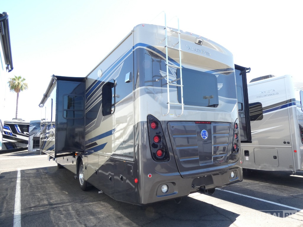 Escape the boring for fun trips in a Vacationer Class A gas motorhome by Holiday Rambler. You can easily make this coach your home-away-from home with features such as dual A/C units, vinyl tile flooring, and stainless steel appliances. The bus-style luggage doors will make for easy unloading, and the automatic hydraulic leveling jacks make setting up camp easier than ever. The Vacationer is constructed with a Powerlock System with interlocking floor, walls, and roof, plus premium gel exterior Vetrosina fiberglass skin with no wood substrate for added durability. Each model includes an automotive style dash with dual monitors, and MultiPlex house controls that can easily be controlled by your smart phone or tablet. The list of standard features doesn't stop there. You'll have an environmentally friendly 100W solar panel, an exterior entertainment center, large holding tank capacities, and so much more!