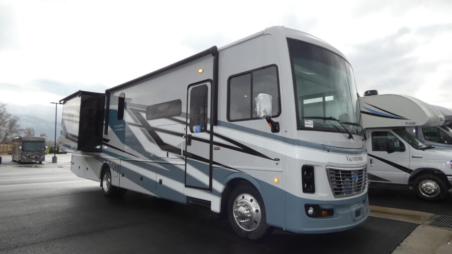 Step into luxury with the 2026 Holiday Rambler Vacationer 35K, where sophisticated design meets practical functionality. This Class A gas motorhome stretches 36' 3" long with two strategically positioned slide-outs that create an expansive living space perfect for both short getaways and extended journeys. Powered by a formidable Ford F53 chassis and 7.3L V8 engine delivering 350 horsepower, this coach offers both power and reliability on the road.
