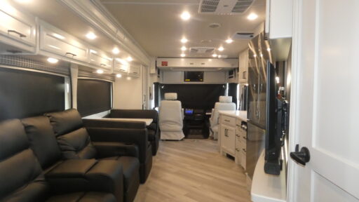The thoughtful bath-and-a-half floorplan provides convenience for families and guests, while the master bedroom offers a sumptuous king-sized bed for ultimate comfort. The main living area features a convertible booth dinette and premium entertainment options both inside and outside the vehicle. Culinary enthusiasts will appreciate the residential refrigerator and three-burner cooktop, making meal preparation a breeze while traveling. Modern amenities including dual A/C units, automated leveling system, and a 100W solar panel ensure comfort regardless of your destination. The premium Vetrosina fiberglass exterior and Powerlock construction system provide durability and peace of mind for years of adventure. To experience the ultimate in mobile luxury, visit your nearest General RV dealership and discover why the Vacationer 35K continues to set the standard for Class A motorhomes.