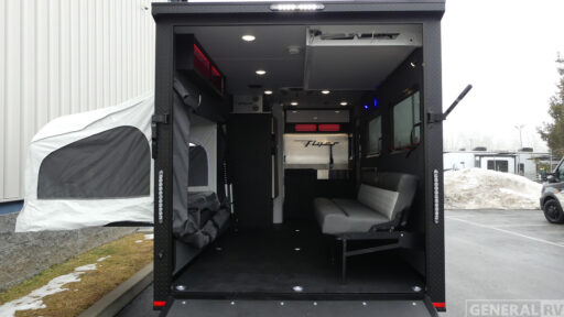 The inTech RV Flyer travel trailers and toy hauler expandables are ready for adventure whenever you are! With the all-aluminum, all-tube cage frame, the Flyer has been built with lightweight and long-lasting materials so that you can enjoy your unit for many, many years. The Flyer has a rugged design so that you can confidently explore new territory and go where traditional RVs cannot. The Flyer has a 2" rear receiver rated for 175 pounds which allows you to bring along your bikes, and the Bluetooth stereo has two speakers you can always have your best music playing.