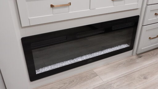 Camping is made easy in this fifth wheel! Once you arrive at the campground, you can enter in through the LCI solid entry steps and start cooking a delicious meal in the middle kitchen with the 21" Furrion range with Piezo ignition,10 cu. ft. 12V "Solar Friendly" refrigerator, and 0.9 cu. ft. microwave to pop a bag of popcorn for movie night. The rear living area offers a more at-home feel with a rear entertainment center with a fireplace, theater seating, and plenty of space to move about thanks to the opposing slide outs. There is also a free standing dinette to play card games and enjoy meals and an XL sofa sleeper that extends to a king-size sleeping space. The full bath includes a 48" x 30" shower with a glass door and a skylight for more standing space, and the front private bedroom includes a queen bed for a great night's rest. You'll also find a wardrobe slide here and an end table with an outlet and a USB port to charge your electronics.