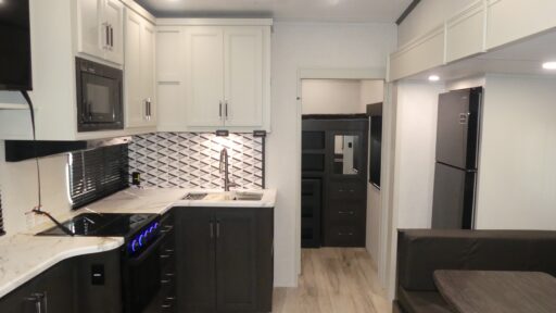 With any Arcadia Super Lite fifth wheel by Keystone, you will enjoy easy-to-tow lengths, unmatched storage, and plenty of windows to let the outdoor views in. The structural I-beam frame will provide a strong foundation to your RV, and the Full pass-through storage for all your equipment and camping gear. You will be able to camp in cold and hot climates thanks to the Peak Weather Package that includes a heated and enclosed underbelly, two Furrion A/C for cool temperatures in the summer, and Keystone's exclusive HyperDeck floor that adds an additional layer of insulation to your floor. The interior will make you feel at home with residential hardware, seamless pressed countertops, black roller shades, and ample storage space. Sometimes the best things come in smaller packages; choose a Arcadia Super Lite today!
