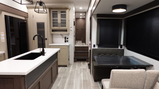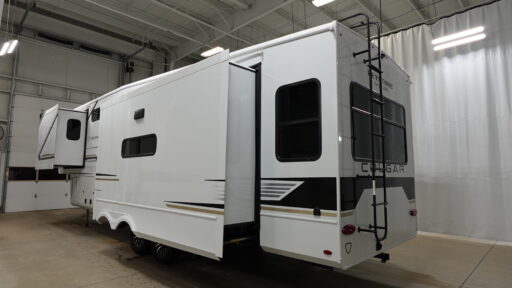 Experience the perfect blend of luxury and functionality with the 2026 Keystone Cougar 316RLS. This fifth wheel is designed to cater to your adventurous spirit while providing the comforts of home. With its spacious interior and thoughtful layout, you'll find room for the whole family, comfortably sleeping up to six. The front bedroom offers a cozy king bed, ensuring restful nights on the road. The rear living area is an inviting space to unwind, featuring theater seating and a dinette, perfect for family meals or game nights.