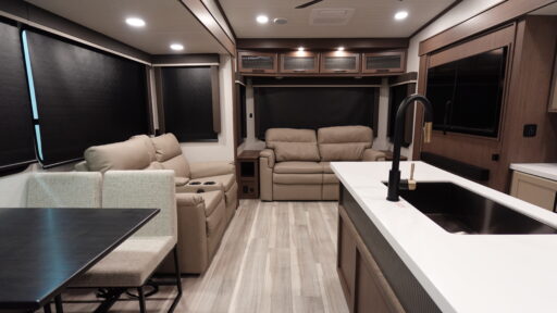 The Cougar 316RLS boasts a well-equipped center kitchen with a full-size electric refrigerator and a three-burner cooktop, making meal prep a breeze. The ample storage, including a pull-out trash bin and pantry, keeps everything organized. The dual awnings extend your living space outdoors, providing shade and shelter for your outdoor gatherings. Plus, with washer and dryer prep, you’re set for extended adventures. This RV is not just a travel companion; it's a lifestyle upgrade. For more details and to see it in person, visit your nearest General RV Dealership.
