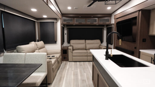 Experience the perfect blend of luxury and functionality with the 2026 Keystone Cougar 316RLS. This fifth wheel is designed to cater to your adventurous spirit while providing the comforts of home. With its spacious interior and thoughtful layout, you'll find room for the whole family, comfortably sleeping up to four. The front bedroom offers a cozy King bed, ensuring restful nights on the road. The rear living area is an inviting space to unwind, featuring theater seating and a dinette, perfect for family meals or game nights.