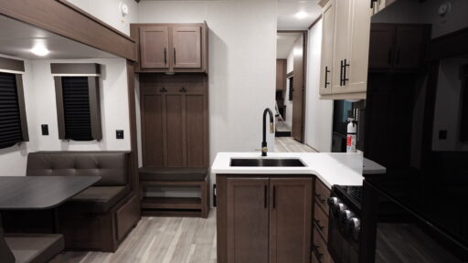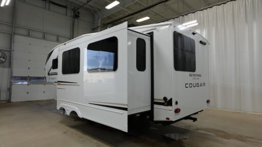 The Cougar Sport's center kitchen is a culinary delight, equipped with a full-size electric refrigerator and a three-burner cooktop, perfect for whipping up your favorite meals. Enjoy the convenience of a 16-foot powered retractable awning, providing the ideal outdoor space for dining or simply soaking in the scenery. With a generous fresh water capacity of 54 gallons and smart storage solutions, this RV is ready for extended journeys. Whether you're embarking on a weekend getaway or a cross-country adventure, the Cougar Sport 2400RE promises a memorable and comfortable travel experience. For more information, visit your nearest General RV Dealership.