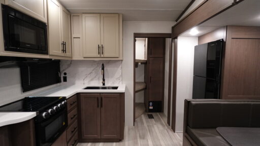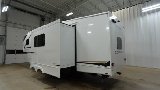 The Cougar Sport 2700BH is designed with convenience in mind. Enjoy the ease of a powered 20-foot retractable awning, perfect for relaxing outdoors. The pass-thru storage offers ample space for all your gear, making it easy to pack for extended trips. Inside, the automatic heater keeps you warm on chilly nights, and the thoughtfully designed bathroom with a plastic/glass shower ensures comfort on the road. With a GVWR of 9500 lbs and a cargo capacity of 1920 lbs, this travel trailer is both robust and versatile. For more details and to experience this RV firsthand, visit your nearest General RV dealership.