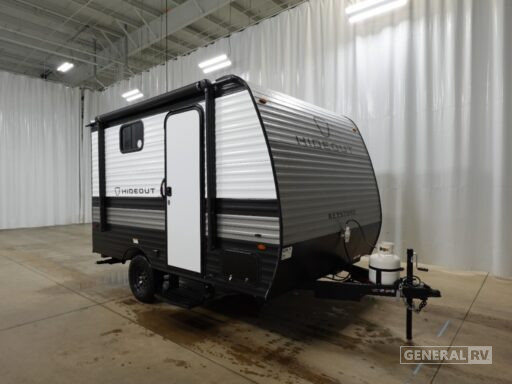 With any Hideout Mini travel trailer by Keystone, you will enjoy lightweight towing thanks to their single-axle! The AlphaPly TPO roof membrane is ultra durable, and the power awning will provide protection from the sun as you relax in your camp chairs outside. Each model includes blackout night shades, LED lighting, plus many more interior comforts. There is also a roof A/C and 20K BTU furnace to keep you comfortable, plus a tankless water heater for endless hot showers!