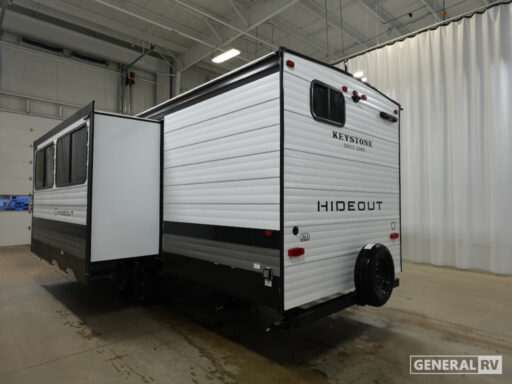 Welcome to the 2026 Keystone Hideout Sport 261BH, where adventure meets comfort in a sleek, 30-foot package. Designed with families in mind, this RV can comfortably sleep up to ten people, making it perfect for those memorable family road trips. The spacious interior features a cozy queen bed, ideal for a restful night’s sleep, while the bunk area offers additional sleeping space for the kids or guests. The booth dinette and sofa provide versatile seating and sleeping arrangements, ensuring everyone has a spot to relax.