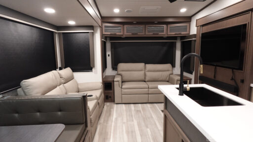 Experience the ultimate in luxury travel with the 2026 Keystone Cougar 360MBI. This stunning fifth wheel is designed to provide a home-like feel while on the road, perfect for families or those who love to entertain. With its spacious layout, featuring four slides, you'll find plenty of room to relax and enjoy. The rear living area is a cozy haven with theater seating and a tri-fold sleeper sofa, ideal for movie nights or unwinding after a day of adventure. The central kitchen is a culinary delight, equipped with a full-size electric refrigerator and a three-burner cooktop, ensuring you can prepare meals with ease.