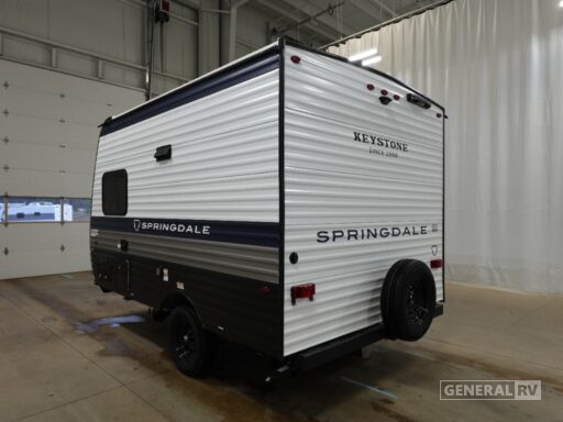 With any Springdale Mini travel trailer by Keystone, you will enjoy lightweight towing thanks to their single-axle! The AlphaPly TPO roof membrane is ultra durable, and the power awning will provide protection from the sun as you relax in your camp chairs outside. Each model includes blackout night shades, LED lighting, plus many more interior comforts. There is also a roof A/C and 20K BTU furnace to keep you comfortable, plus a tankless water heater for endless hot showers!