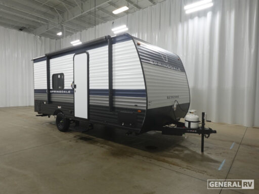 With any Springdale Mini travel trailer by Keystone, you will enjoy lightweight towing thanks to their single-axle! The AlphaPly TPO roof membrane is ultra durable, and the power awning will provide protection from the sun as you relax in your camp chairs outside. Each model includes blackout night shades, LED lighting, plus many more interior comforts. There is also a roof A/C and 20K BTU furnace to keep you comfortable, plus a tankless water heater for endless hot showers!