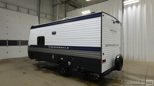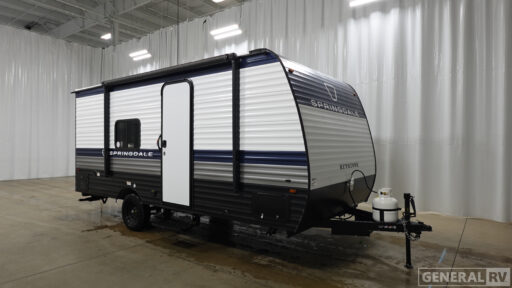 With any Springdale Mini travel trailer by Keystone, you will enjoy lightweight towing thanks to their single-axle! The AlphaPly TPO roof membrane is ultra durable, and the power awning will provide protection from the sun as you relax in your camp chairs outside. Each model includes blackout night shades, LED lighting, plus many more interior comforts. There is also a roof A/C and 20K BTU furnace to keep you comfortable, plus a tankless water heater for endless hot showers!