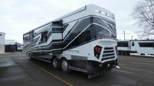 The 2026 Newmar Dutch Star 4081 is a luxurious diesel pusher that redefines comfort and style on the road. At nearly 41 feet long, this RV is a masterpiece of design and engineering, built on a sturdy Freightliner XC-Series chassis and powered by a robust Cummins I6 engine with 450 horsepower and 1250 lb-ft of torque. The spacious interior is enhanced by three slides, providing ample room for relaxation and entertainment. The front living area features a jackknife sofa and a side hide-a-bed sofa, perfect for accommodating up to six sleepers. The centerpiece is a stunning king-sized bed in the center bedroom, ensuring restful nights after a day of adventure.