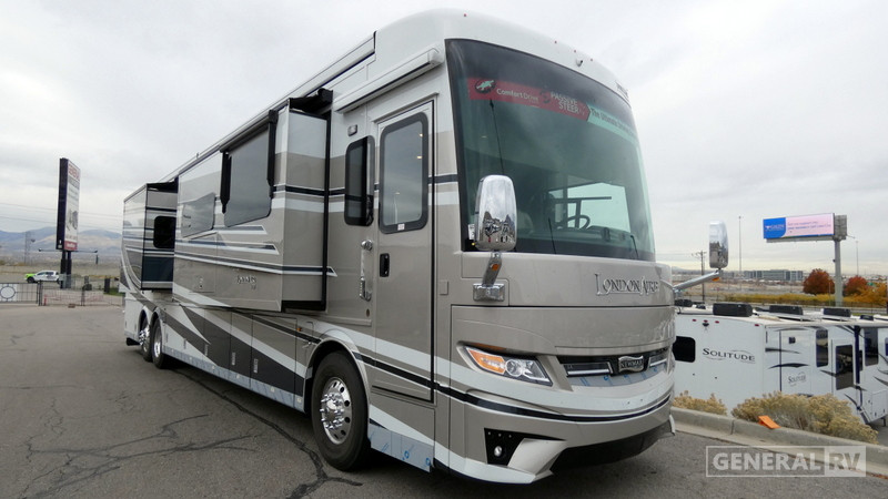 The London Aire Class A diesel motorhome by Newmar starts with a Spartan chassis with a tag axle and 605 HP, tire pressure monitoring on the tag axle chassis, aluminum wheels, and an electronic chassis information center in dash. There is also 5/8" foam insulation laminated in sidewalls and ceiling to ensure years of use. You will stay comfortable with the three 15M Penguin heat pump central air conditioners with remote control thermostat that will keep you warm during those cooler months. Each model includes super polished solid surface countertops, hardwood cabinets with raised panel doors, and many more luxuries. Some of the conveniences you are sure to appreciate are the central vacuum with a tool kit, the Aqua Miser shower system, and the air leveling control system for hassle-free setup.