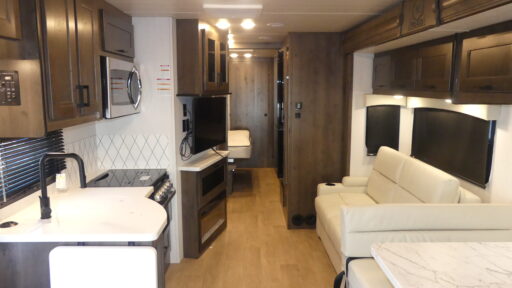 Experience the ultimate in luxury travel with the 2026 NeXus RV Wraith 37F. This RV is designed for those who seek both adventure and comfort, featuring a spacious interior that can sleep up to eight people. The front living area is perfect for gatherings, boasting a cozy seating arrangement that invites relaxation. The heart of the Wraith is its center kitchen, equipped with a full-size refrigerator, convection cooking, and a three-burner cooktop, making meal preparation a breeze. The powered retractable awning extends your living space outdoors, providing a perfect spot for alfresco dining or simply enjoying the view.