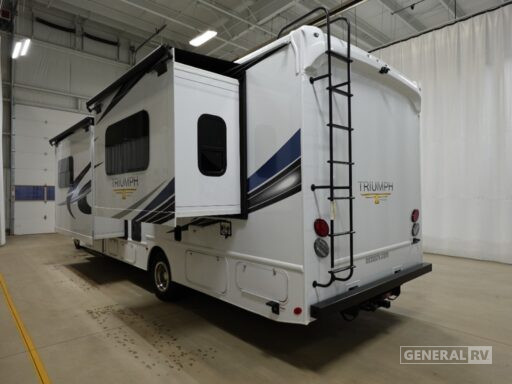 The thoughtfully designed layout includes a front living area with a cozy dinette and a 64" sofa, perfect for relaxing after a day of exploration. The rear bedroom offers a tranquil retreat with ample storage, while the rear bath ensures privacy and convenience. Enjoy the outdoors with the powered retractable awning, and rest easy knowing you're backed by the reliable Ford E450 chassis with 325 horsepower. Whether you're embarking on a cross-country journey or a weekend getaway, the Triumph 29T is your ticket to unforgettable memories. For more details or to see it in person, visit your nearest General RV dealership.