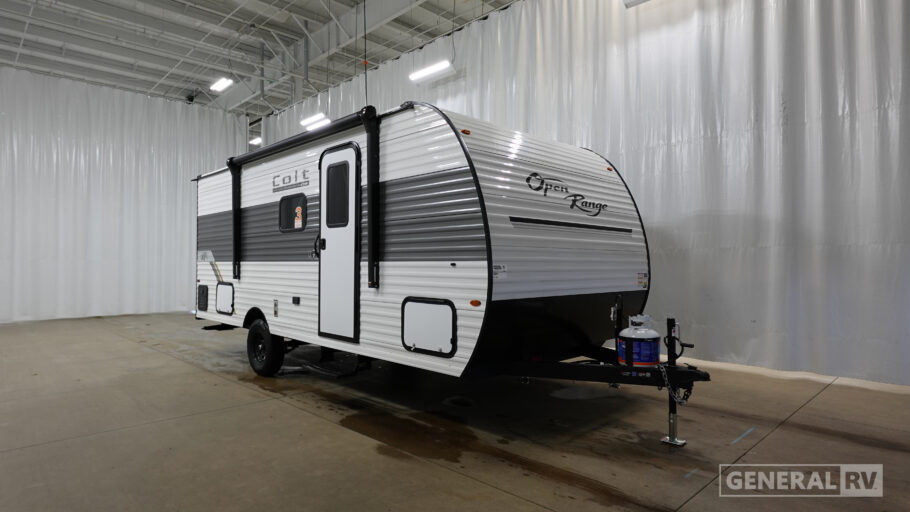 With any Colt travel trailer by Open Range RV, you can be sure you're getting a budget-friendly unit designed to fit your lifestyle! Each one is built to last with a PVC roofing membrane and built-in A-frame, plus there are nitrogen-filled radial tires and self-adjusting electric brakes for easy towing. You will appreciate the utilities that include 30-amp service, an A/C unit, and an on-demand tankless water heater. A few interior comforts include vinyl flooring throughout, solid hardwood cabinet doors, and residential grade kitchen countertops to make your space feel more like home.
