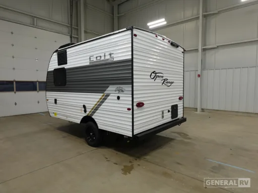 With any Colt travel trailer by Open Range RV, you can be sure you're getting a budget-friendly unit designed to fit your lifestyle! Each one is built to last with a PVC roofing membrane and built-in A-frame, plus there are nitrogen-filled radial tires and self-adjusting electric brakes for easy towing. You will appreciate the utilities that include 30-amp service, an A/C unit, and an on-demand tankless water heater. A few interior comforts include vinyl flooring throughout, solid hardwood cabinet doors, and residential grade kitchen countertops to make your space feel more like home.