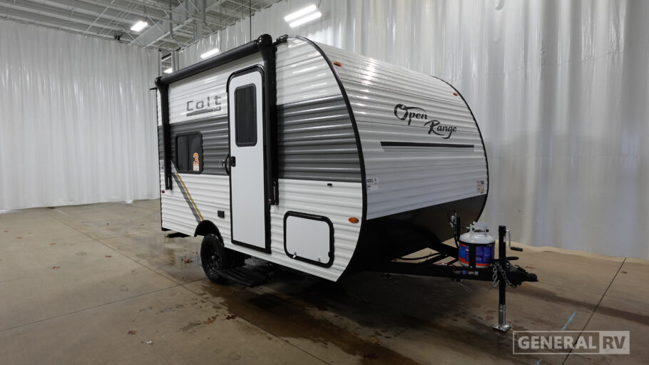 With any Colt travel trailer by Open Range RV, you can be sure you're getting a budget-friendly unit designed to fit your lifestyle! Each one is built to last with a PVC roofing membrane and built-in A-frame, plus there are nitrogen-filled radial tires and self-adjusting electric brakes for easy towing. You will appreciate the utilities that include 30-amp service, an A/C unit, and an on-demand tankless water heater. A few interior comforts include vinyl flooring throughout, solid hardwood cabinet doors, and residential grade kitchen countertops to make your space feel more like home.