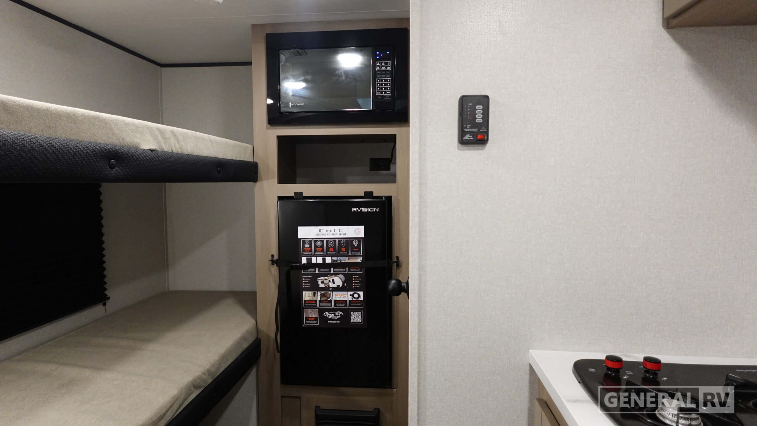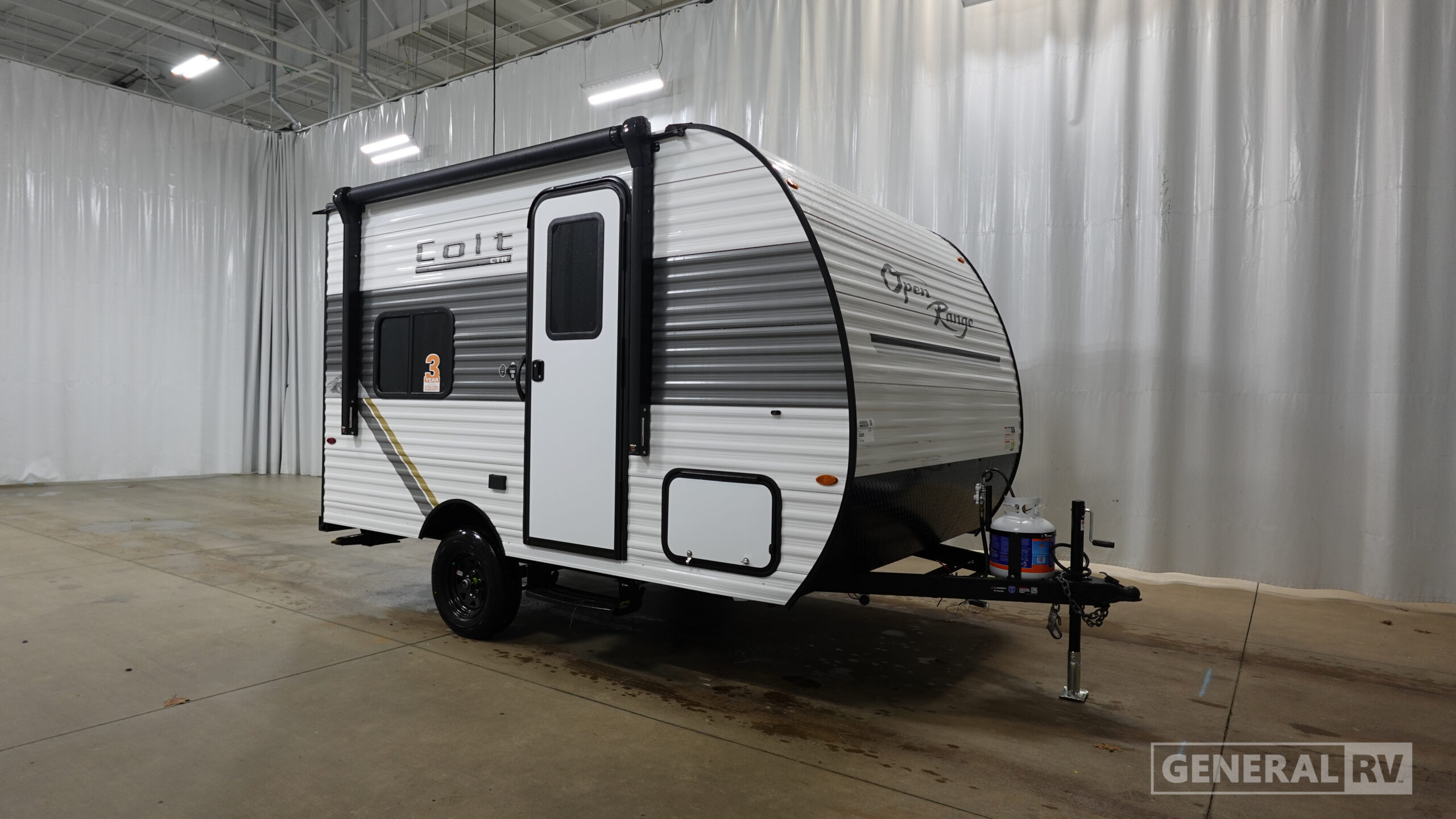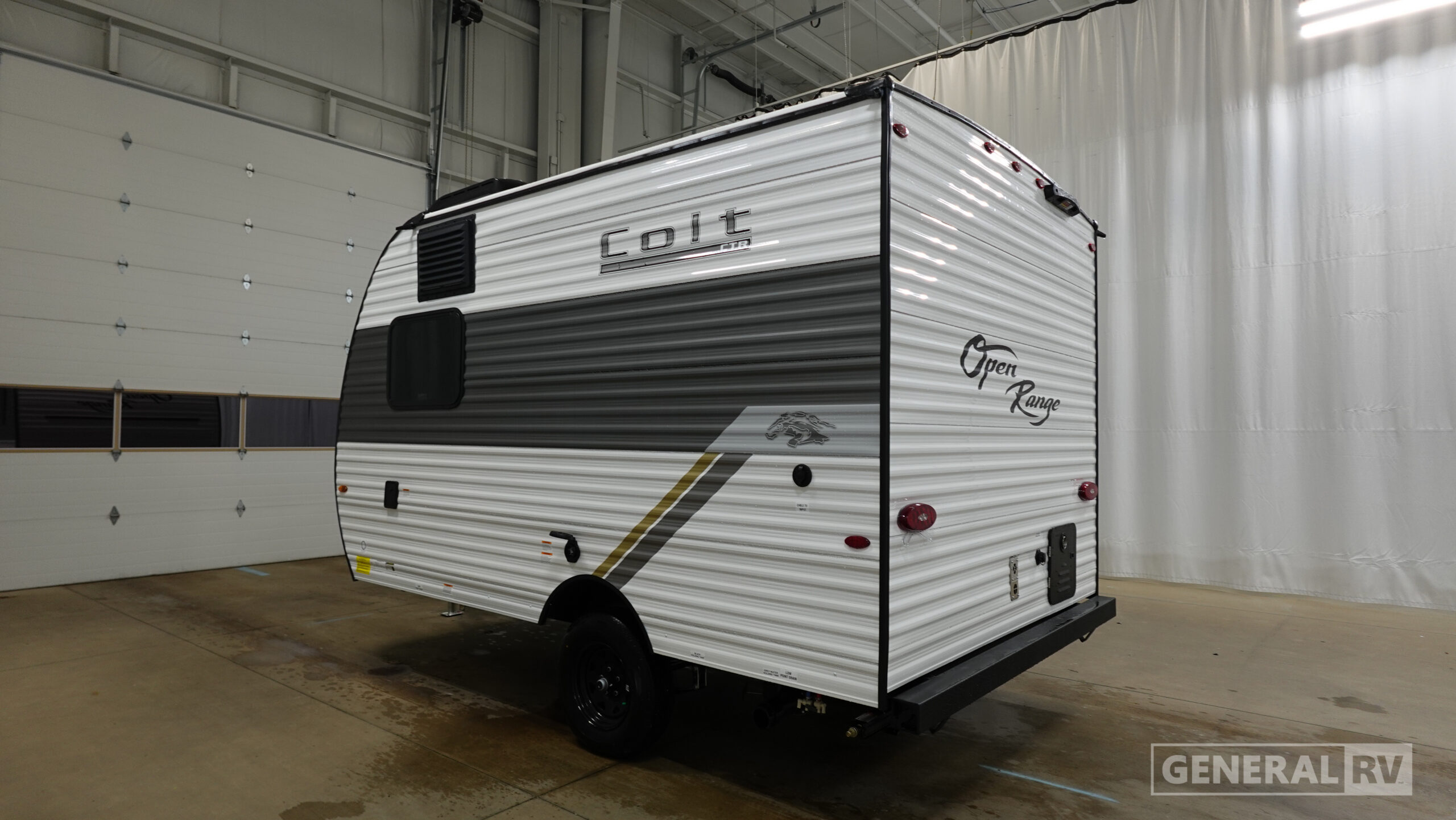 With any Colt travel trailer by Open Range RV, you can be sure you're getting a budget-friendly unit designed to fit your lifestyle! Each one is built to last with a PVC roofing membrane and built-in A-frame, plus there are nitrogen-filled radial tires and self-adjusting electric brakes for easy towing. You will appreciate the utilities that include 30-amp service, an A/C unit, and an on-demand tankless water heater. A few interior comforts include vinyl flooring throughout, solid hardwood cabinet doors, and residential grade kitchen countertops to make your space feel more like home.
