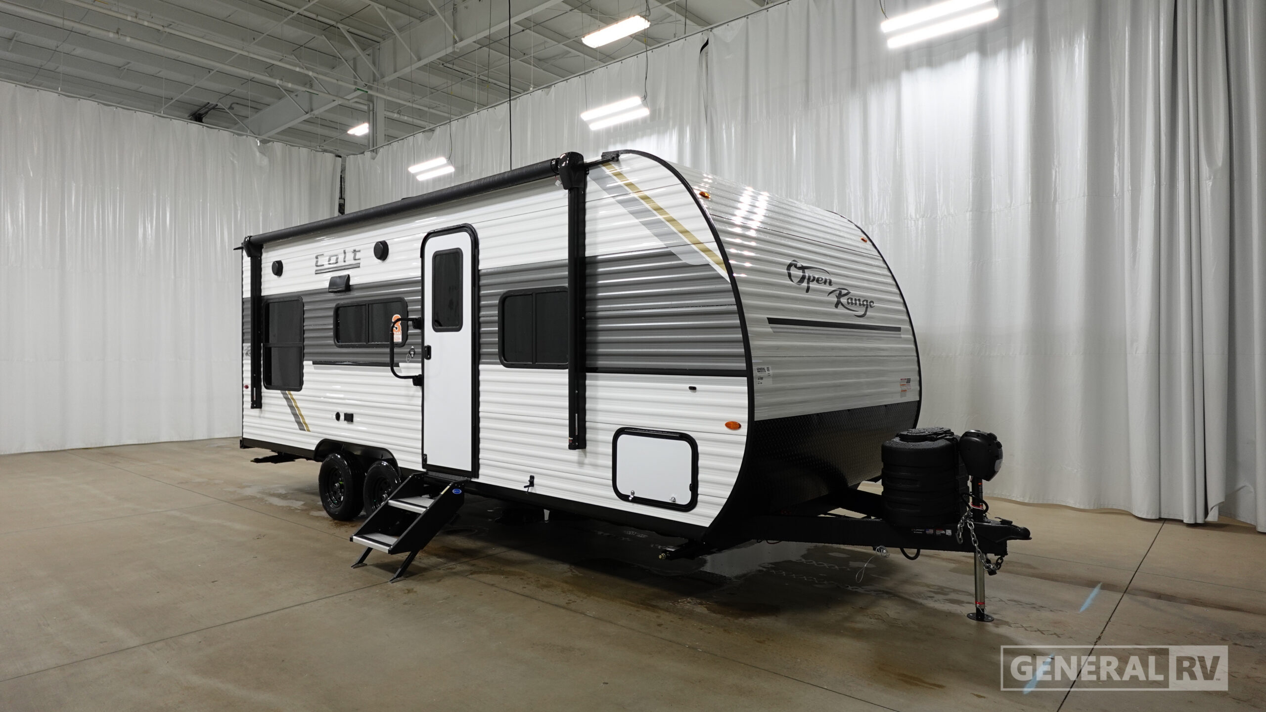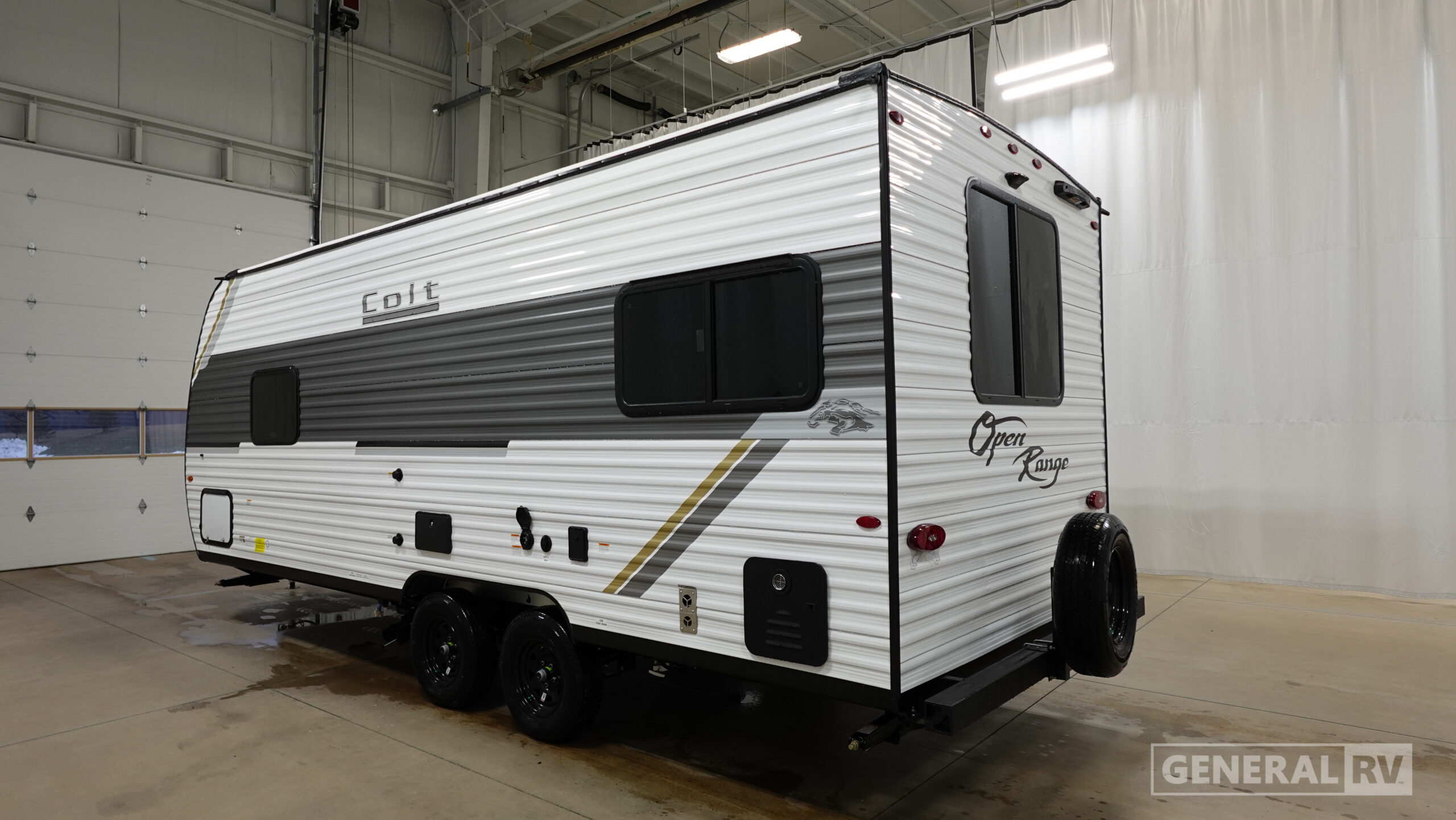With any Colt travel trailer by Open Range RV, you can be sure you're getting a budget-friendly unit designed to fit your lifestyle! Each one is built to last with a PVC roofing membrane and built-in A-frame, plus there are nitrogen-filled radial tires and self-adjusting electric brakes for easy towing. You will appreciate the utilities that include 30-amp service, an A/C unit, and an on-demand tankless water heater. A few interior comforts include vinyl flooring throughout, solid hardwood cabinet doors, and residential grade kitchen countertops to make your space feel more like home.