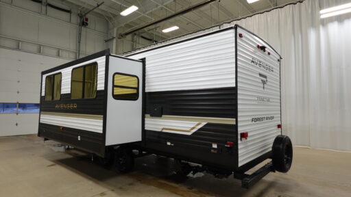 With any Avenger travel trailer by Prime Time RV, you will find innovation, a solid build, and comfort at every turn. Each model is built with Tuff Coat on the exterior metal, a fully enclosed underbelly, and a PVC roof membrane to help extend the life of your trailer. You will also find automotive name badging on the exterior, along with an exterior shower, front rail LED light strips, plus an XL padded entry grab handle to name a few conveniences. There are plenty of storage spaces inside, as well as Congoleum flooring and woven PVC marine grade slide out flooring, a designer shower surround, and seamless pressed countertops. You are sure to appreciate the onboard water filtration system, tankless water heater, plus 30K BTU furnace and 15K ducted A/C to help keep you comfortable.