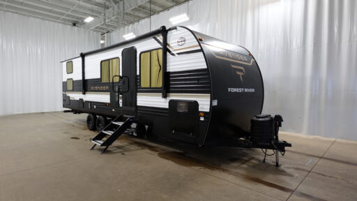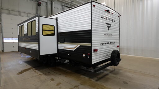 With any Avenger travel trailer by Prime Time RV, you will find innovation, a solid build, and comfort at every turn. Each model is built with Tuff Coat on the exterior metal, a fully enclosed underbelly, and a PVC roof membrane to help extend the life of your trailer. You will also find automotive name badging on the exterior, along with an exterior shower, front rail LED light strips, plus an XL padded entry grab handle to name a few conveniences. There are plenty of storage spaces inside, as well as Congoleum flooring and woven PVC marine grade slide out flooring, a designer shower surround, and seamless pressed countertops. You are sure to appreciate the onboard water filtration system, tankless water heater, plus 30K BTU furnace and 15K ducted A/C to help keep you comfortable.