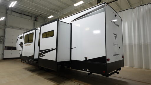 With any Crusader fifth wheel by Prime Time, you will enjoy outstanding quality and premium features! The Dexter E-Z Flex rubberized suspension equalizer will help make towing smoother than ever, and the high gloss gel coated exterior fiberglass is sure to be eye-catching. There are also thick insulated pass-through storage baggage doors outside, along with a 102" wide body, and hassle-free one-touch auto leveling. Inside, you'll find real wood cabinet doors, carpet-less slide rooms, blackout roller shades, and stain resistant, easy clean furniture. The Crusader fifth wheels are built with Eternabond construction, a one-piece PVC roof membrane, radiant foil insulation, plus rack and pinion slide systems.